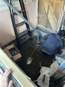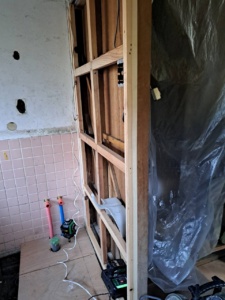 ①既存浴室解体撤去 ②土間ならし及び土間打ち ③既存給排水管及び給湯管絶縁 ④新設給排水管及び給湯器管降り直しと繋ぎこみ ⑤新設配線振り直し及び繋ぎこみ ⑥既存窓閉鎖入口枠新設 ⑦浴室設置 ⑧内装