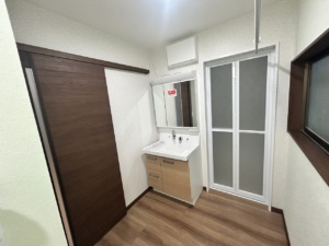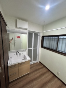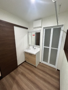 今回採用頂いた、洗面台は化粧鏡(3面鏡)と化粧台に収納スペースがありますのでたっぷり収納でき安心です。