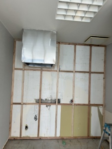 また、ひな壇と腰壁はメラミンで造作しました。