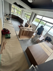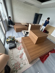 お客様のご要望「オフィスのイメージに合わせて、自由に座って作業ができて、お掃除もしやすいようにリフォームしてほしい」とご依頼をいただきました。 |