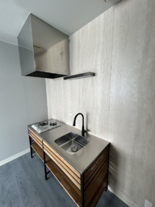 キッチンはウッドワンのフレームキッチンを設置して、床はフロアタイルを施工いたしました。