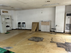 天井は下地から組みボード張り、床は下地を組み調整をおこないフロアタイルを貼りました。