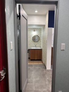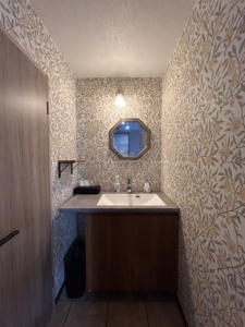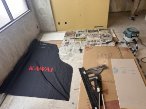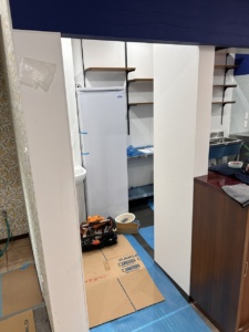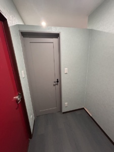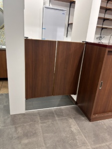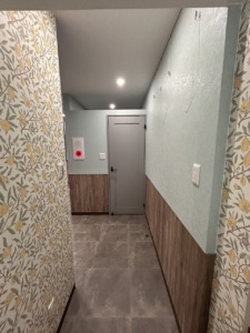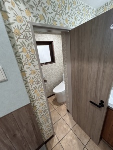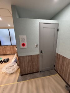 スタッフルーム扉 ウッドワン ドレタス(開き戸) トイレ 建具(造作) 厨房 スイングドア (造作)W400×H1000 2枚 玄関口カーテンレール・ロールカーテン(タチカワブラインド) その他照明設置 鉄板扉塗装等