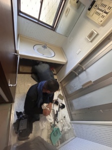 *浴室入口あたりの床面にたわみがあり、水腐れが確認されました