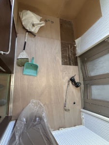 お客様へのご提案洗面所の床面にたわみがあり、クッションフロアをめくると水腐れが確認されました。 床を開口し水腐れの部分改修をおこないました。